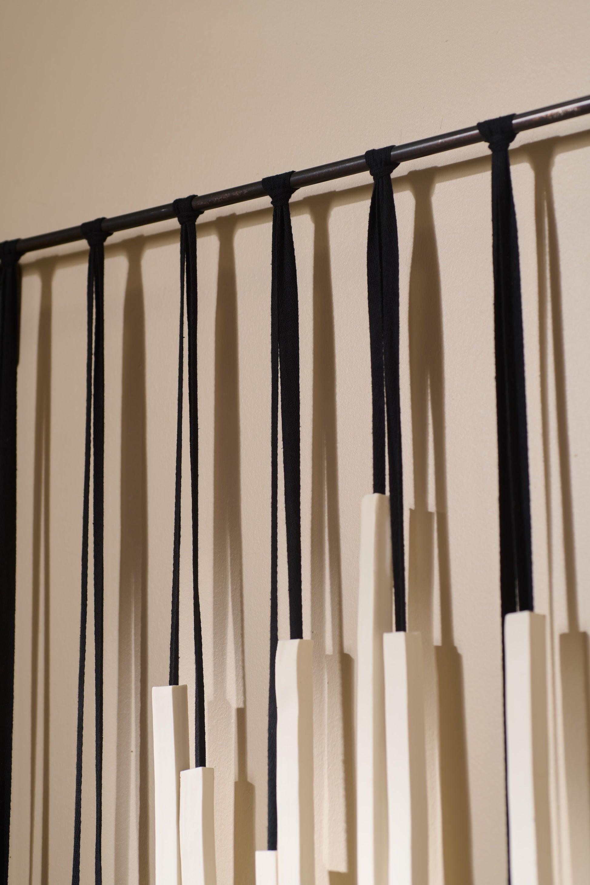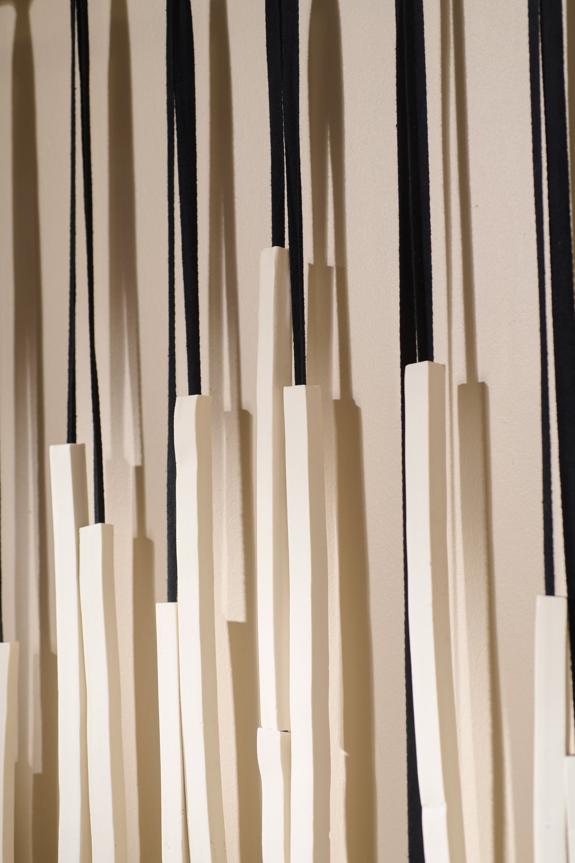 Delicate yet sculptural, the Counterpoint Small Discs echo the simple beauty of fishing gear gathered and hung in coastal towns. Handmade porcelain discs are strung on twill tape, each one unglazed to showcase its raw, tactile surface.