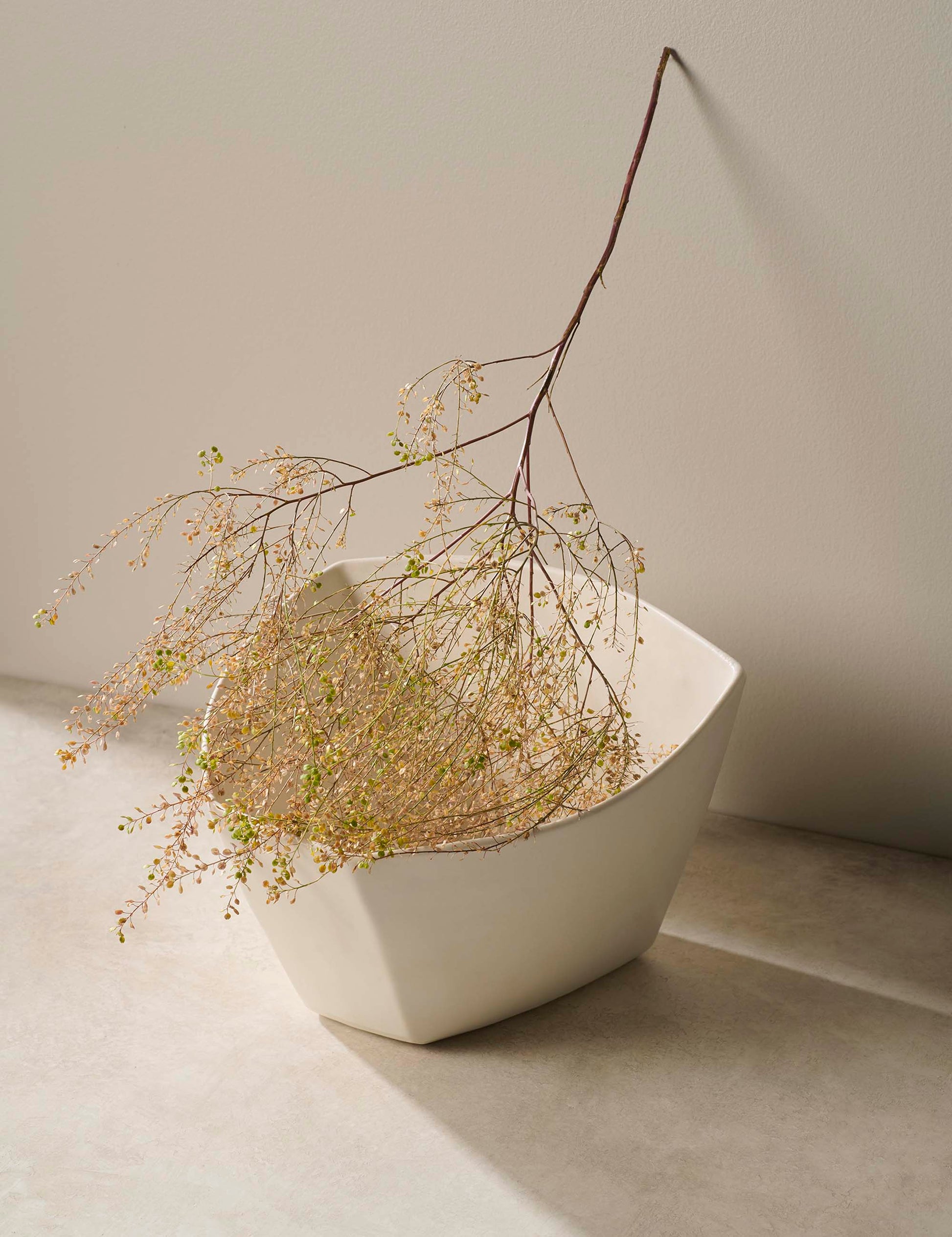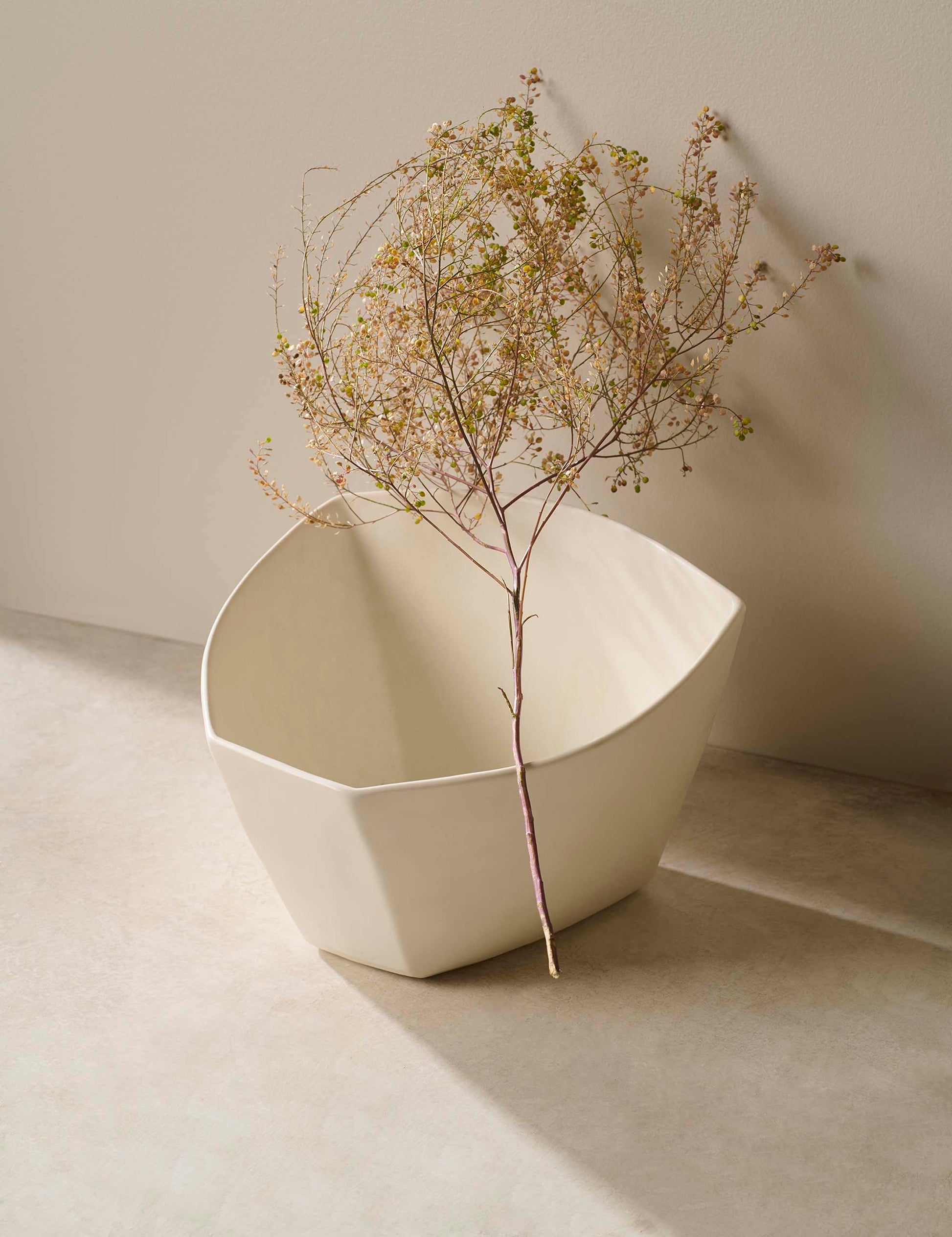 The Flock Bowl takes its form from sails filled with wind, gathered and moving together across water. Slipcast in porcelain and finished in our Matte White glaze, its semi-matte surface softens reflection and accentuates subtle curves, echoing the billow of fabric.