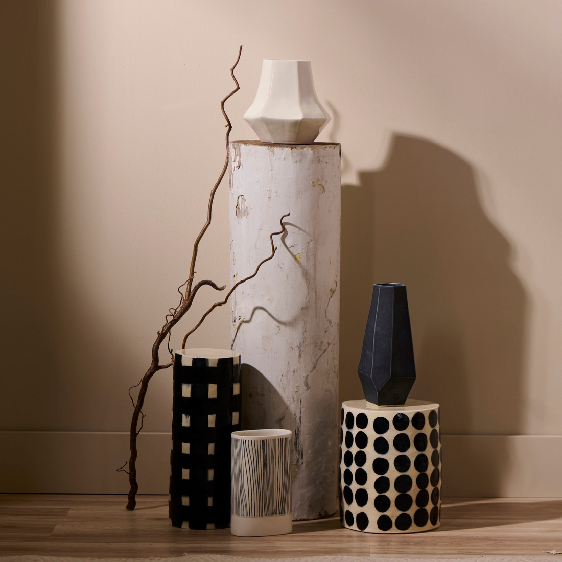 Handmade in stoneware and finished with hand-painted slips and glazes, each pedestal carries subtle variations in surface and form. Designed for flexibility, the Dot Pedestal is equally at home as furniture or as sculpture—an invitation to commission a piece tailored to your space.