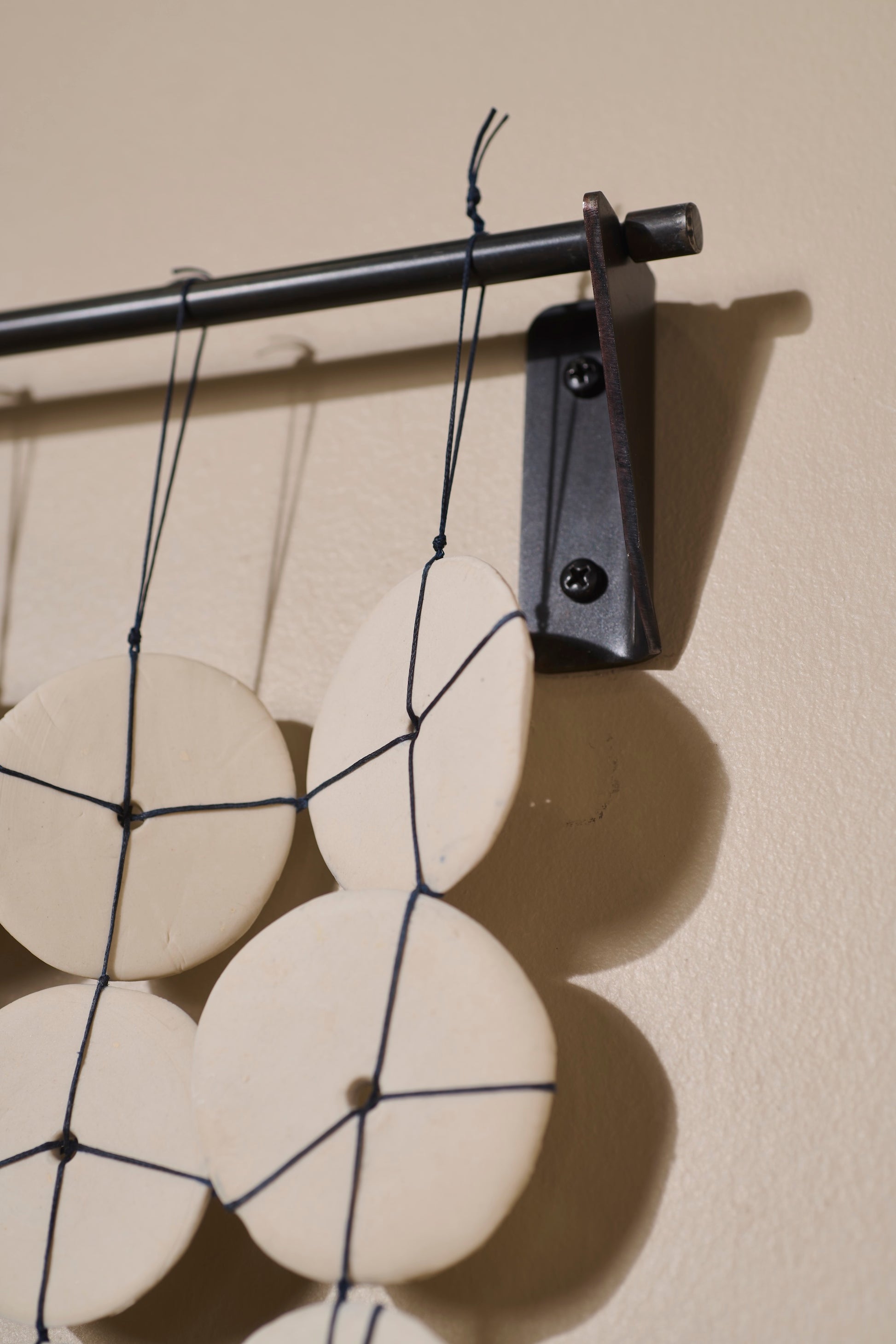 Handmade Porcelain Discs, Waxed thread, Metal Hanging Bar